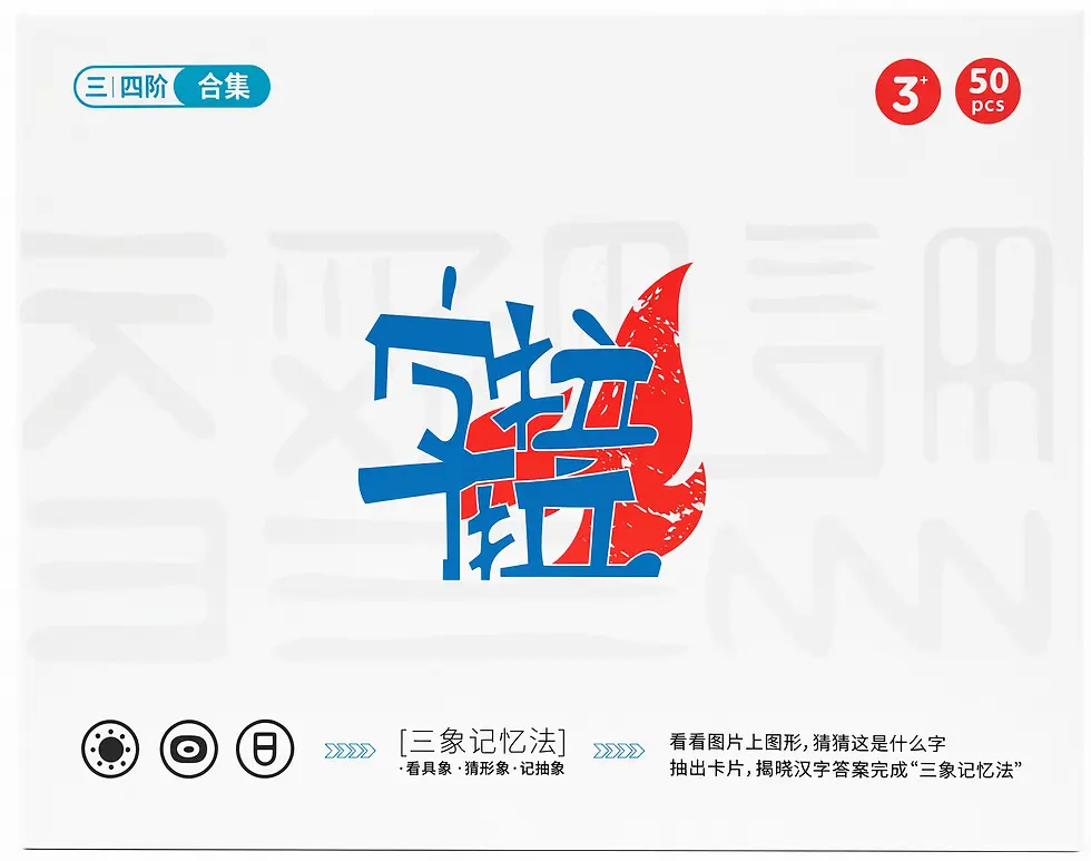 让人过目不忘的美感一向是小象汉字产品的追求。这次小象汉字请专业的字体设计师设计了36个字的现代简体字形和甲骨文字形,又请资深的儿童插画师设计了36张精美的实物图,还根据不同的形状和主题设计了12种生动可爱的背面图案。